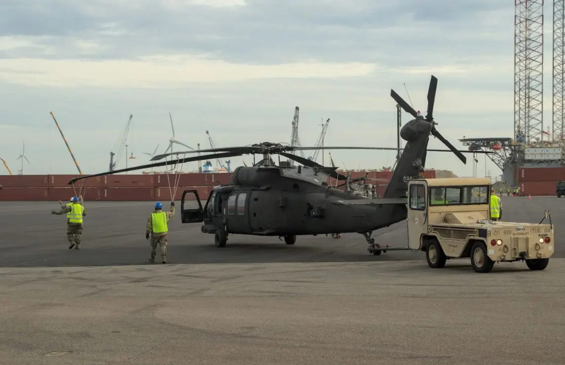De helikopters horen bij de 1st Infantry Division Combat Aviation Brigade (1CAB). Het gaat om Chinooks, Apaches en Black Hawks. De toestellen werden na het uitladen in een grote loods geplaatst, waar ze weer in elkaar werden gezet. Na een korte test vlogen ze door naar vliegbasis Woensdrecht om daarna hun reis in oostelijke richting te vervolgen.