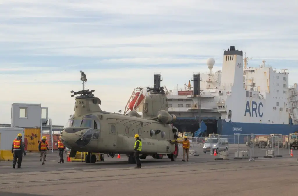 Het Amerikaanse transportschip ARC Endurance is vorige week aangekomen in de haven van Vlissingen. Aan boord waren 55 helikopters en ongeveer 1.200 voertuigen met bestemmingen in Duitsland, Polen en Letland. Nederland begeleidt het enorme militaire transport.