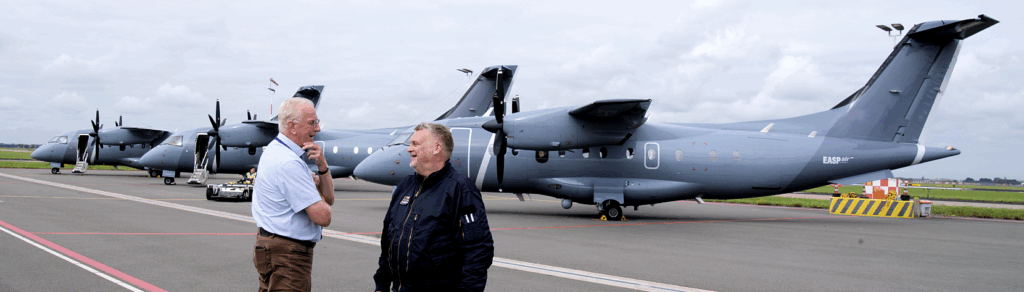 Uniek moment op Schiphol: de volledige MPA-vloot van EASP AIR NL/UK kwam bij onderhoudsbedrijf JetSupport bijeen voor upgrades en foto- en video-opnames. De Dornier 328’s van EASP Air ondergaan deze maand een reeks inspecties en technische upgrades bij JetSupport.