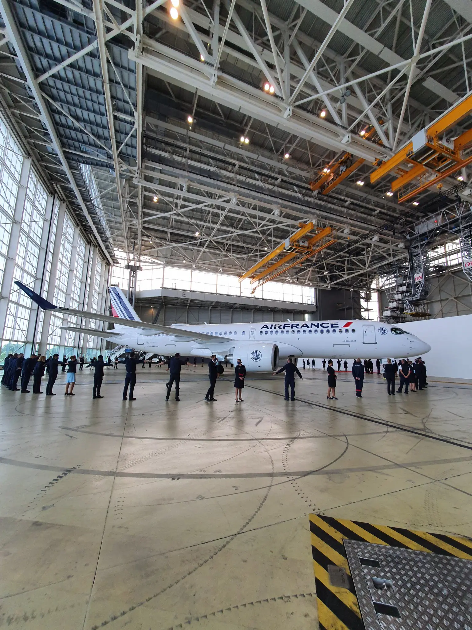 Het eerste toestel verliet op 26 juli in de voormalige Bombardier fabriek in Mirabel de spuitcabine . Kort daarna had Europese luchtvaartautoriteit EASA groen licht gegeven voor meer passagiers aan boord van de voor Air France-KLM bestemde A220-300s. In eerste instantie mochten er maximaal 145 passagiers mee, maar dit mogen er van de EASA nu 149 worden. In Air France-KLM uitvoering worden dit er 148.